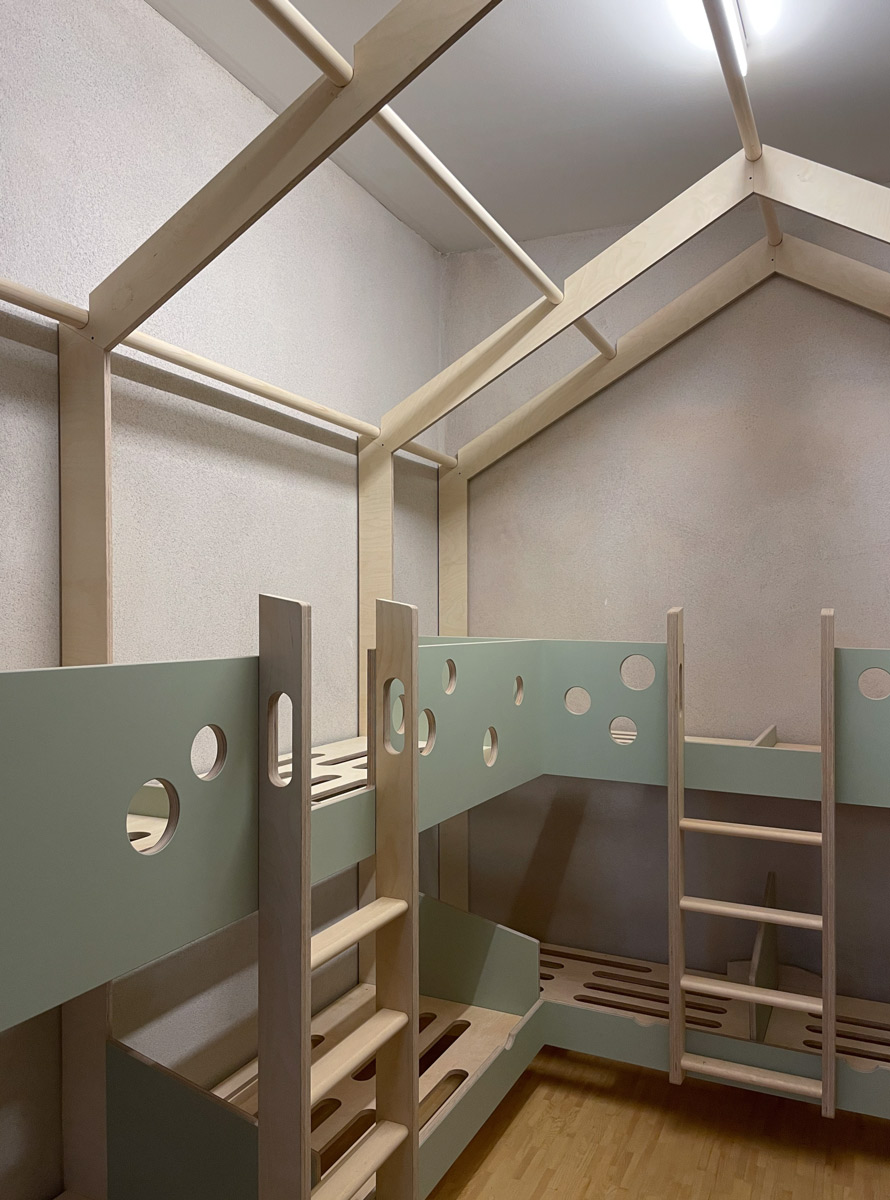 Auf zwei Ebenen und unter einem Dach finden hier 12 Kinder Ruhe.
