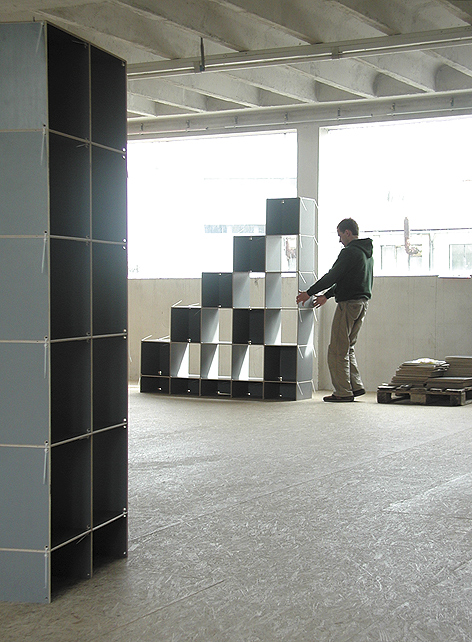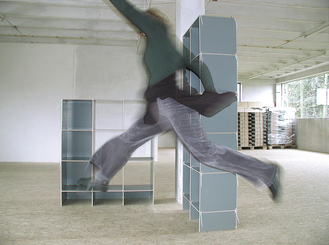 Das Regal- und Raummöbel basiert es auf einem additiven Bindesystem und ist beliebig in die drei Raumachsen erweiterbar. Unter dem Namen "illegal" nahm es GEA in sein Möbelprogramm auf.